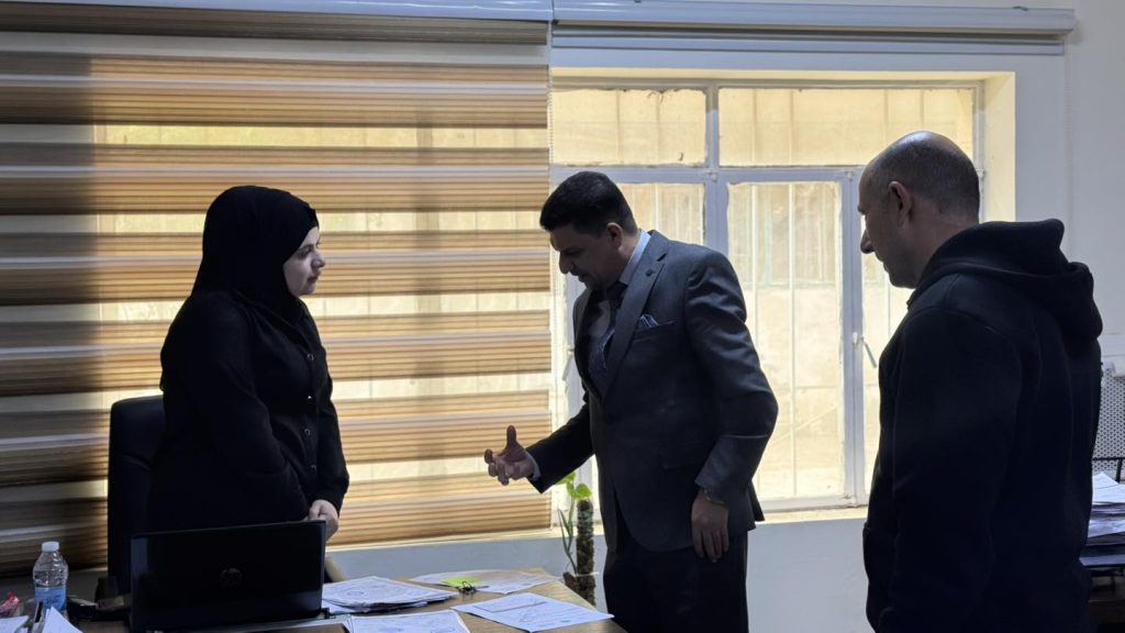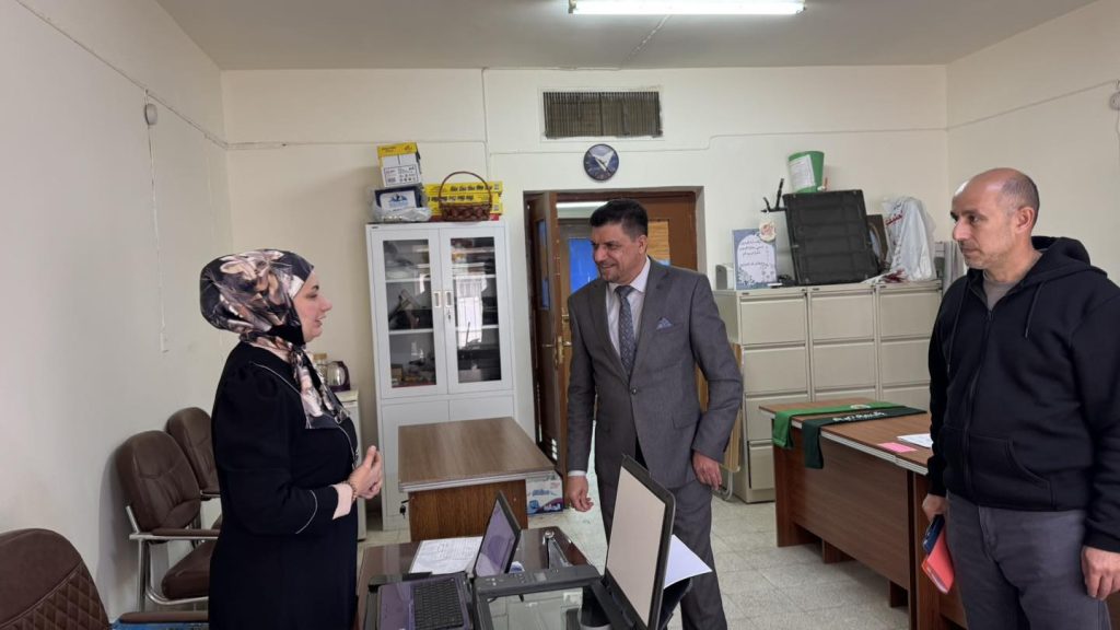 أجرى عميد كلية علوم الطاقة والبيئة الأستاذ الدكتور رائد نوفي حسان المحترم برفقة معاون العميد للشؤون الادارية الأستاذ الدكتور طارق صلاح فتحي المحترم جولة تفقدية في تشكيلات الشؤون الإدارية ووحداتها وشُعبها، للاطلاع على سير العمل الإداري والوقوف على آلية أداء المهام اليومية.