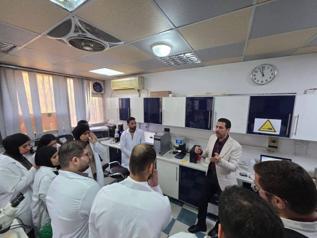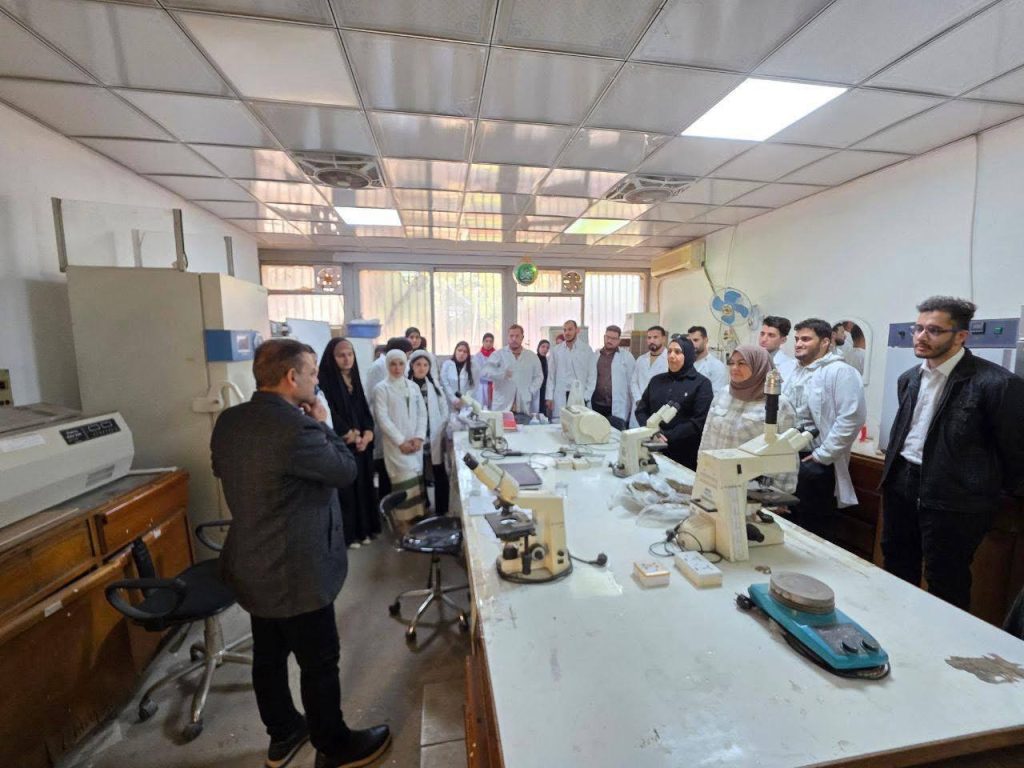 الدكتور أحمد عيدان الحسني، الدكتورة ساجدة فرحان حسين، السيدة رويدة فاهم كامل، والدكتور علي رحيم علي، حيث قُدّمت للطلبة محاضرة علمية تناولت دور الطحالب كمؤشرات حيوية دقيقة للتلوث الكيميائي، وشرح الآليات التي تجعلها مؤشراً فاعلاً في تقييم صحة النظم البيئية المائية. كما تضمنت الزيارة التعرف على البروتوكولات العلمية لجمع عينات الطحالب من البيئات المائية، وفهم منهجيات التحليل الكمي وحساب الكثافة العددية، إلى جانب مشاهدة تقنيات تشخيص الطحالب باستخدام المجهر.